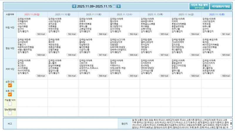 주간식단표 2025.11.02~11.08,11.09~11.15 페이지 정보 작성자 운영자 쪽지보내기 메일보내기 자기소개 아이디로 검색 전체게시물 쪽지보내기 메일보내기 자기소개 아이디로 검색 전체게시물 작성일25-10-30 14:04 조회108회 댓글0건 본문 주간식단표 2025.11.02~11.08,11.09~11.15 다음글 목록